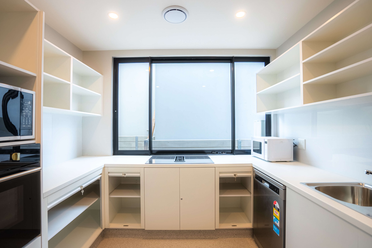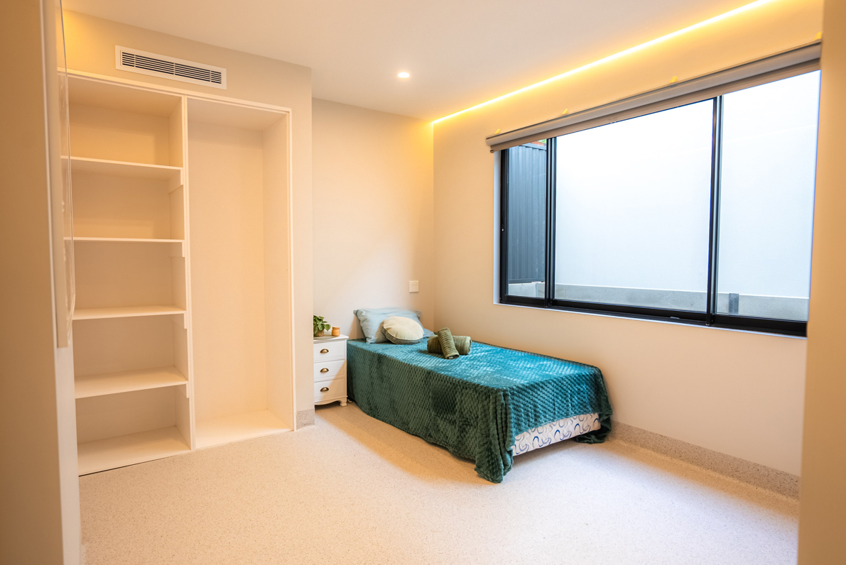 This Specialist Disability Accommodation (SDA) home is thoughtfully configured as two independent Robust units—one on the ground floor and one upstairs. Each unit offers self-contained private suites designed to balance independence with support. Every suite includes its own ensuite bathroom, kitchenette, built-in storage, and access to shared communal spaces, ensuring residents enjoy both privacy and connection.